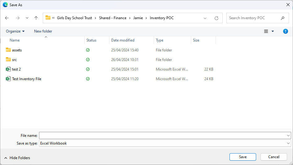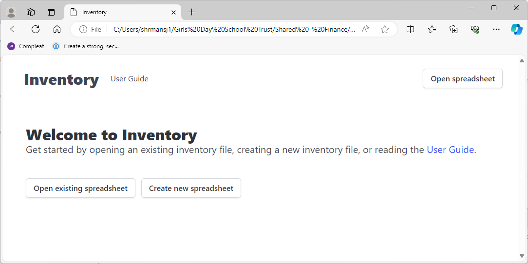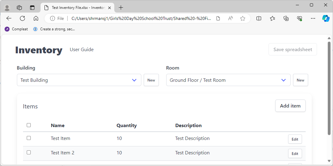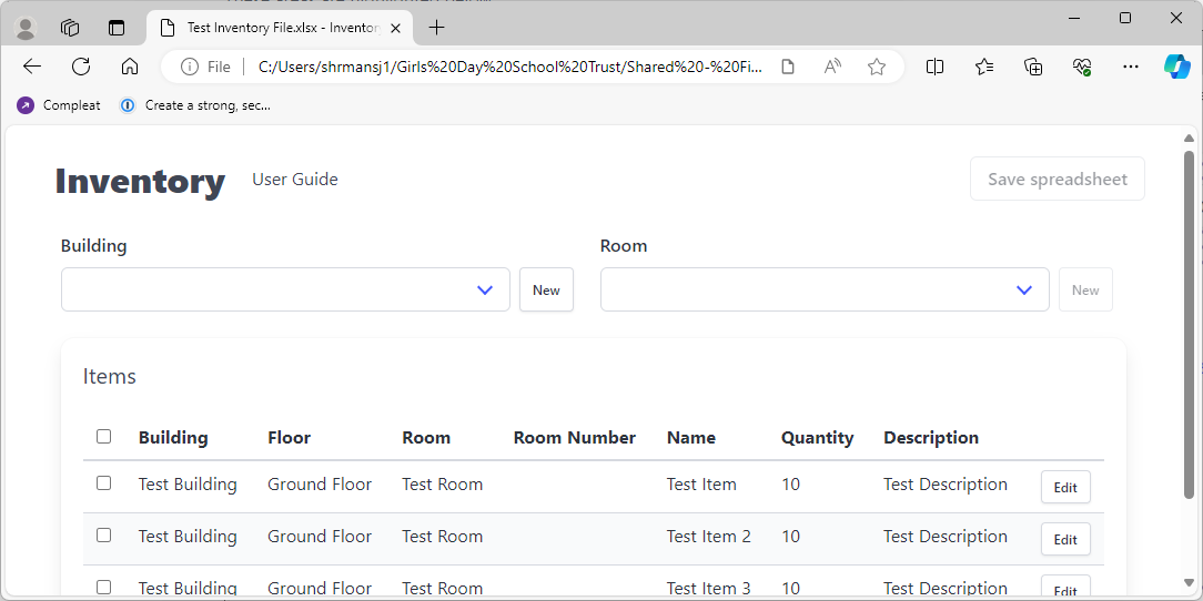 - Save Spreadsheets button - this will be disabled until the user modifies the Inventory file.
